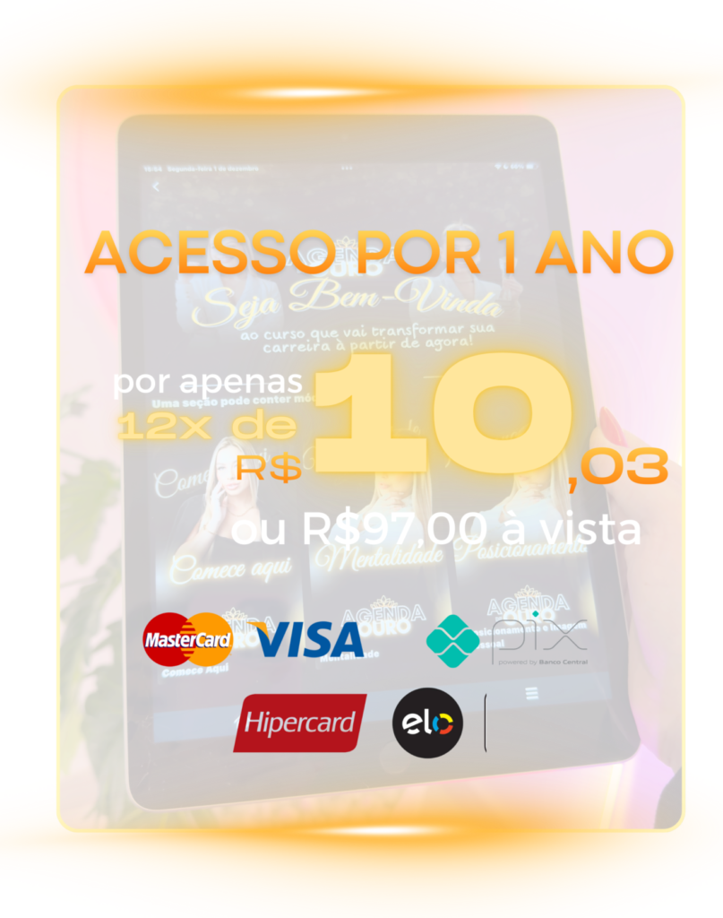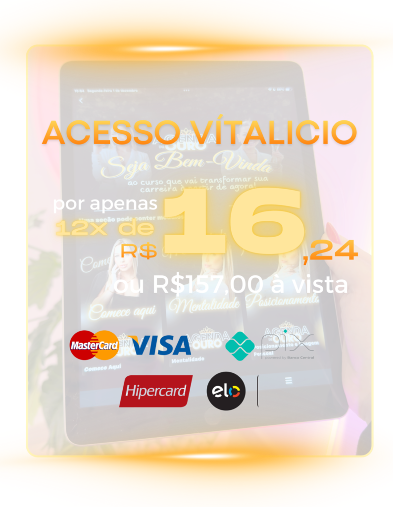 Dentro do Agenda de Ouro você aprende como perder essa trava, como gravar de forma natural, como montar uma identidade visual segura e como se posicionar sem medo.